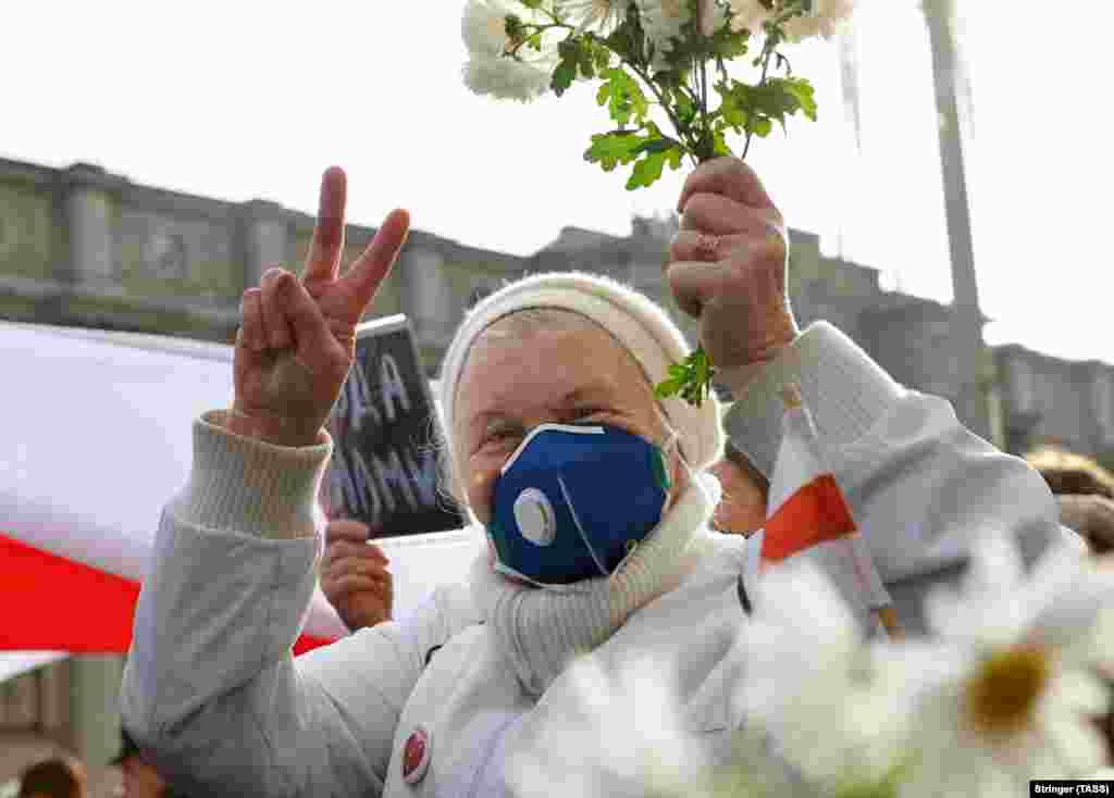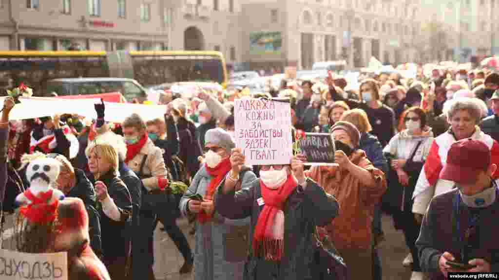 Уже традиционно по понедельникам на минской площади Независимости у костела Святых Сымона и Алены пенсионеры собрались на марш. Колонной они прошли по проспекту Независимости. К шествию присоединялись прохожие всех возрастов. Среди них много студентов, которые с утра вышли на акции протеста и поддержали всеобщую забастовку.