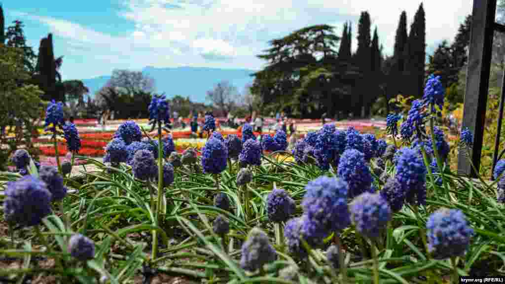 На открытии цветочной экспозиции выступали кадеты ялтинской школы № 11. В свою очередь бессменный руководитель ботанического сада Юрий Плугатарь на мероприятии не присутствовал. Как сообщает корреспондент Крым.Реалии, накануне открытия Парада тюльпанов Плугатарь уехал в командировку в Сирию.