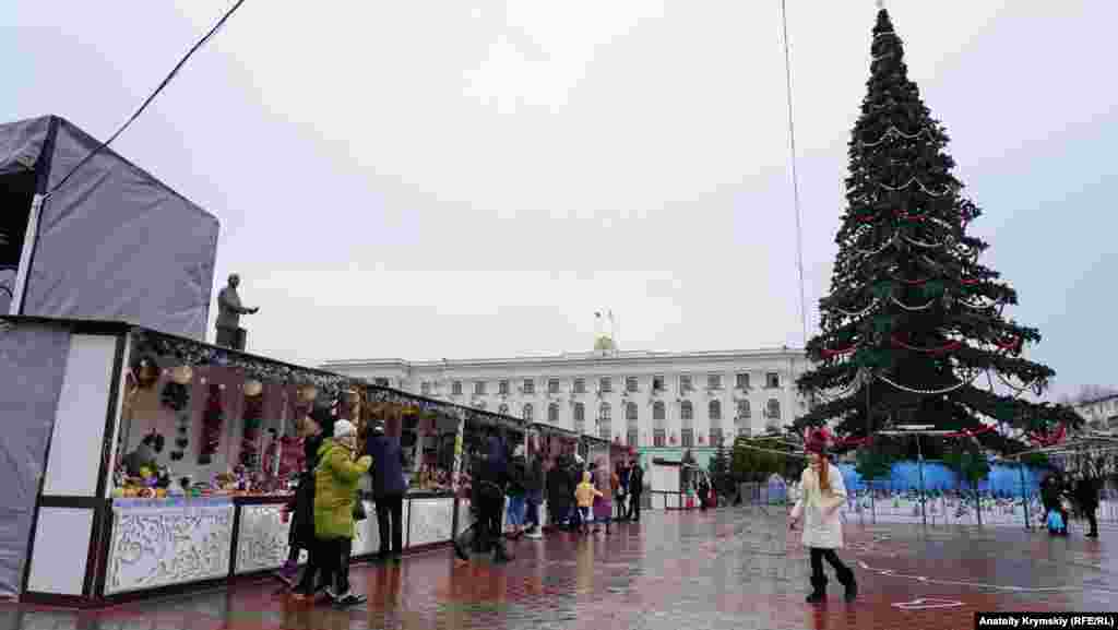 Последние дни уходящего года в крымской столице выдались дождливыми, а от того какими-то серыми и невзрачными. Дорожные бригады, аврально в слякоть принявшиеся устранять свои прорехи в капитальном ремонте центральных улиц, лужи повсюду и грязный городской транспорт только сгущали будничную серость. Впрочем, к Новогоднему празднику город все же украсили и корреспондент Крым. Реалии прошел по центральным улицам и площадях Симферополя, чтобы запечатлеть его ритм за считанные дни до Нового года.