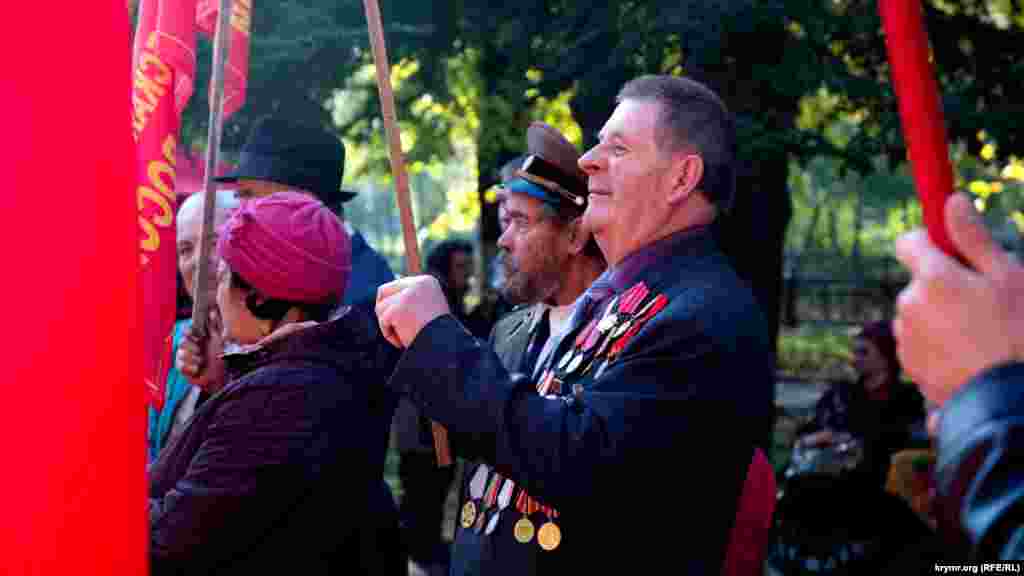 В Симферополе 7 ноября устроили шествие в честь 100-летия Октябрьской революции. Как это было – в фоторепортаже корреспондента Крым.Реалии.