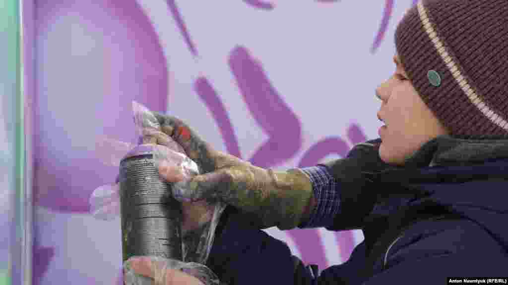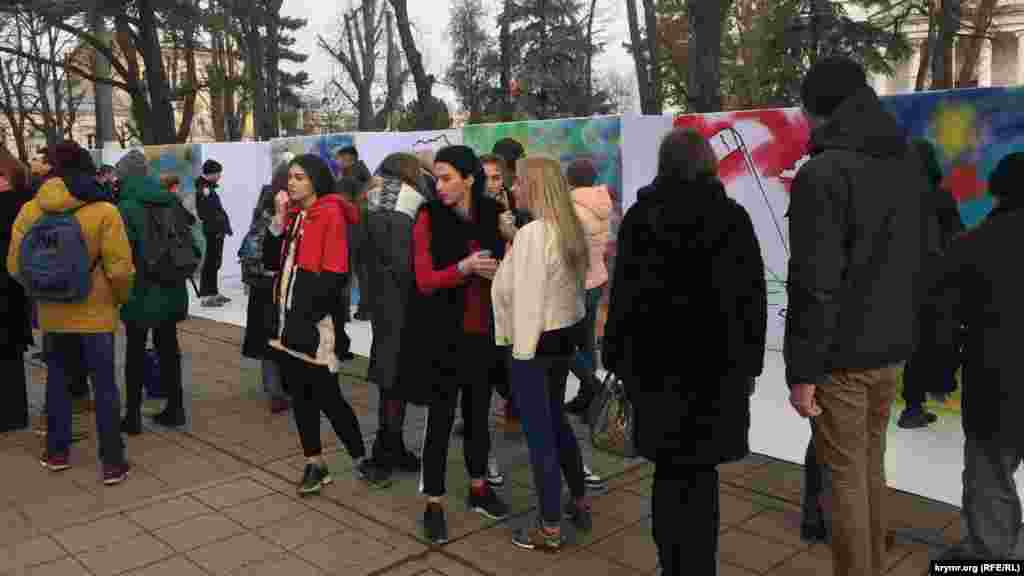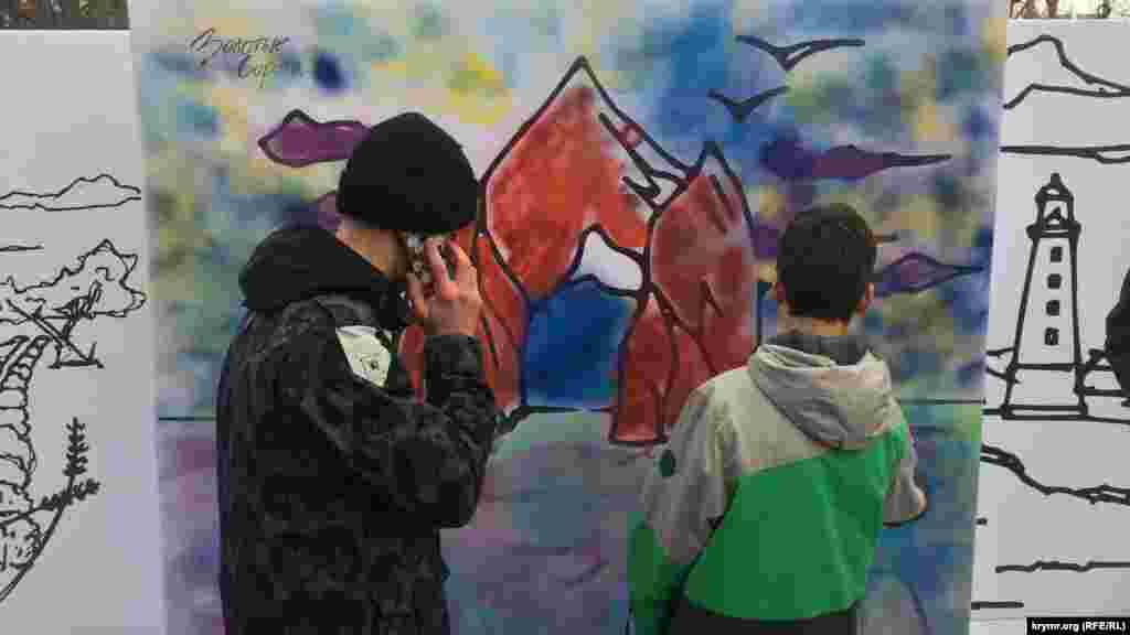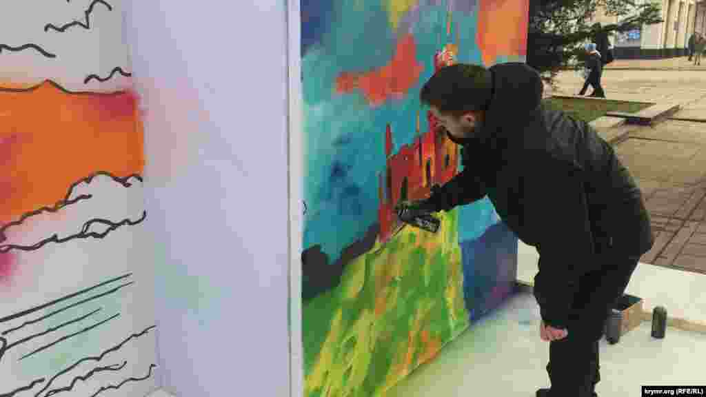 В сквере перед зданием Госсовета любой желающий мог разрисовать краской для граффити изображения достопримечательностей полуострова