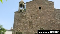Церковь Сурб Саркис – ее иногда еще называют церковью Cвятого Сергия – старейшая в Феодосии. Говорят, она была построена в 1330 году. Церковь принадлежит Армянской апостольской церкви, и она – единственная действующая в Феодосии. То есть эта церковь всегда открыта, и раз в несколько месяцев тут проводят службу. В любое время сюда можно зайти, потрогать стены, поставить свечку.