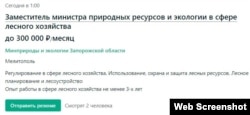 Судя по всему, после таких новостей проблема поиска людей, готовых сотрудничать с оккупационной властью, оказалась довольно серьезной. Настолько, что Александру Воробьеву приходится искать сотрудников на обычных сайтах объявлений – даже собственного заместителя. Эта вакансия еще свободна, прошедшему конкурс обещают платить до 300 тысяч рублей в месяц. Чуть меньше (260 тысяч в месяц) может зарабатывать в этом же министерстве "директор Департамента недропользования и водного хозяйства".