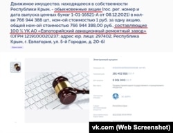 Несмотря на то, что «Евпаторийский авиационный ремонтный завод» восемь лет контролируется Россией и работает в ее интересах, он, по-прежнему, принадлежит украинскому государственному концерну «Укроборонпром». В ответ на запрос Крым.Реалии в ведомстве публично заявили, что не признают российскую сделку в отношении Евпаторийского авиазавода, если она состоится.