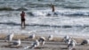 Мужчины решили искупаться в Черном море в начале ноября. Температура воды у побережья Евпатории находится на отметке 16 °C.